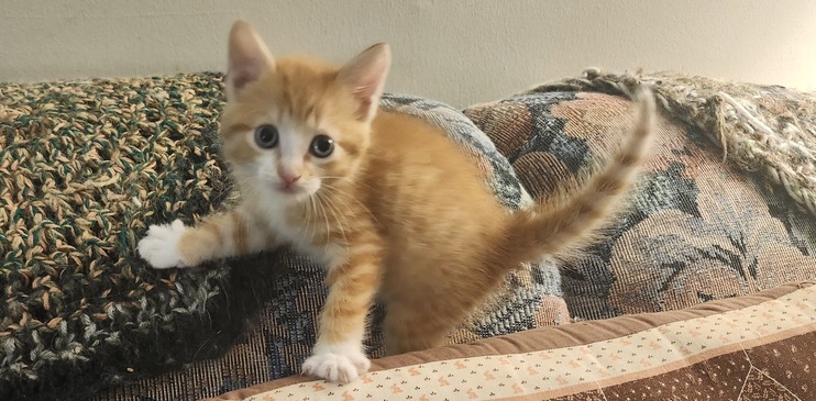 Meet Popcorn, a small but mighty orange kitten with a big personality! This silly little girl is full of fun and energy — always the first to start a wrestling match or explore a new corner of the room. Popcorn’s adventurous spirit keeps life exciting, and her playful antics are guaranteed to make you smile. Whether she’s chasing toys, tumbling with her buddies, or snuggling up after a busy day of play, Popcorn is ready to bring laughter and love into your home.